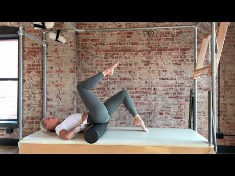These are the first few exercises of a beginner reformer class. Study the transitions and stability in the flow between each exercise. Footwork - lengthen the leg instead of locking the knee. Stabilize the heels/foot position for each.